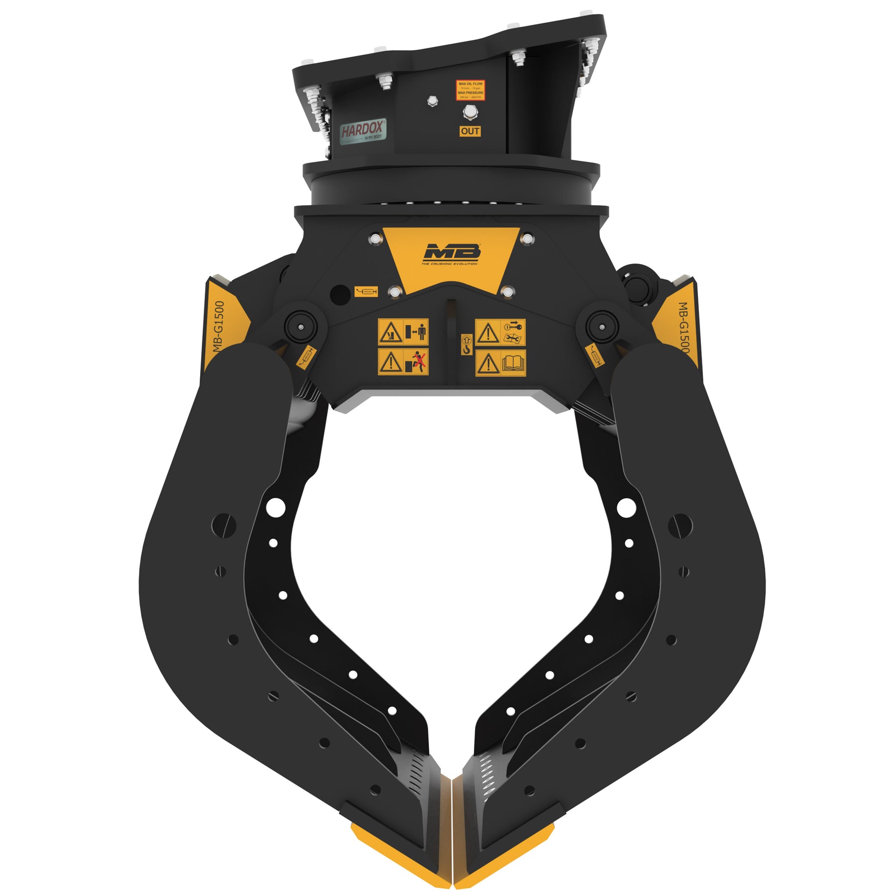 Chwytak wieloszczękowy MB Crusher do koparek od 20 do 30 ton. Główne cechy modelu MB-G1500 S4 to poręczność, praktyczność i sprawność. Umożliwia przenoszenie różnorodnych materiałów, takich jak kłody, kamienie, gruz, słupy, a także precyzyjne pozycjonowanie kamieni czy oczyszczanie terenu z gałęzi i innych elementów.