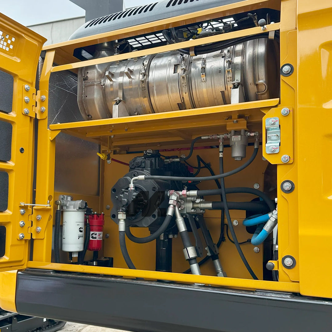 Trzy inteligentne tryby pracy automatycznie dostosowują osiągi do warunków na placu budowy – dzięki temu maszyna reaguje szybciej, spala mniej paliwa i pracuje ekologiczniej.