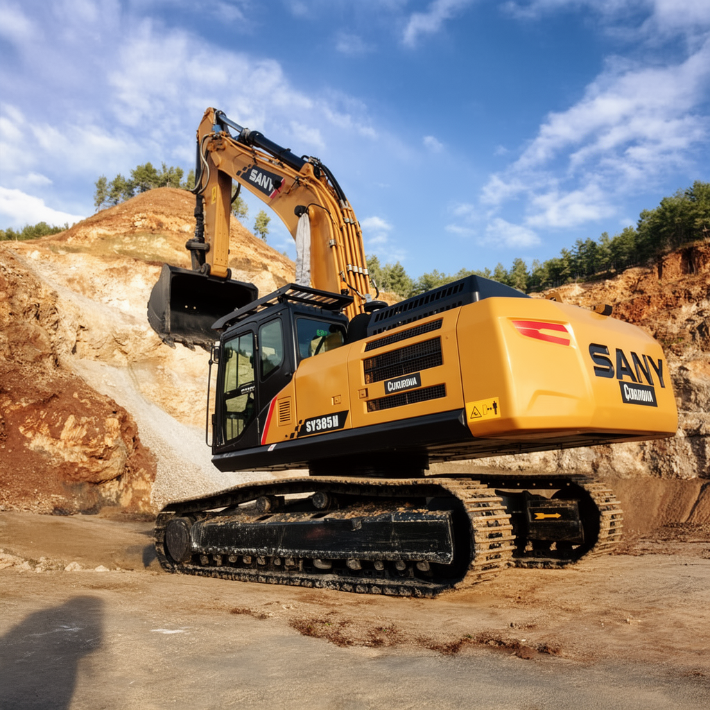 SY385H o masie ok. 39 000 kg napędzana jest silnikiem Cummins QSL9 o mocy 231 kW, przystosowanym do średnich i ciężkich obciążeń. Wzmocniony wysięgnik i ramię, z kutymi sworzniami i tulejami zużywalnymi, zapewniają długą żywotność w pracy w urobku. Podwozie górnicze z masywną ramą, gąsienicami z wysokowytrzymałej stali i listwami trzyzębnymi gwarantuje stabilność w terenie skalistym. Pompa główna o dużej wydajności pracuje w optymalnym zakresie obrotów, łącząc wysoką moc z rozsądnym spalaniem.