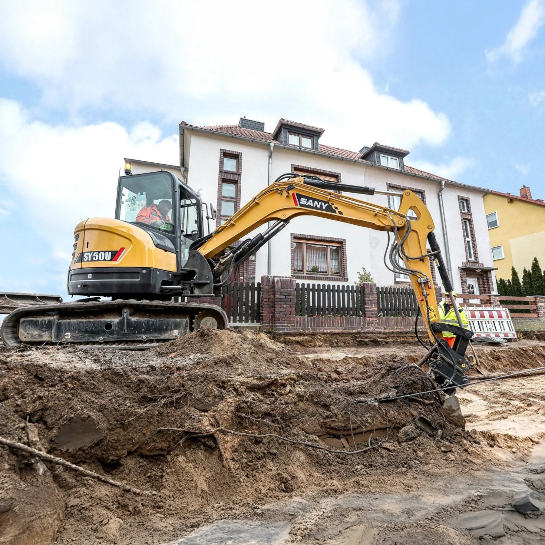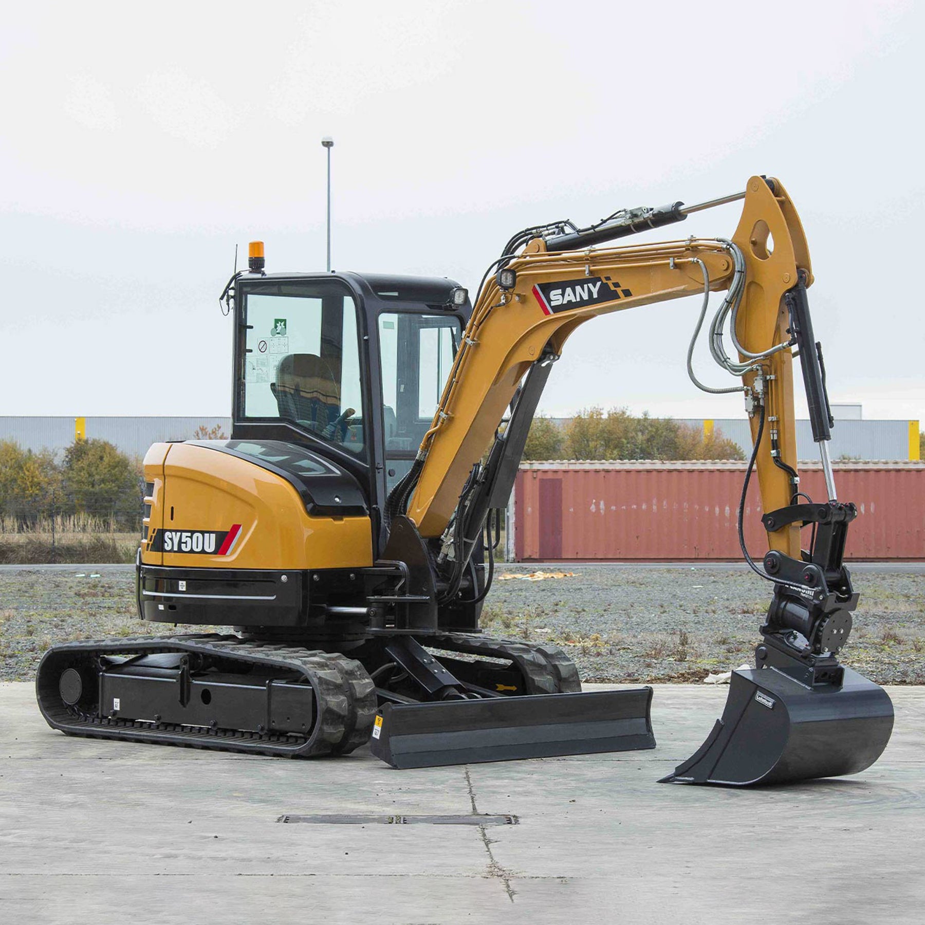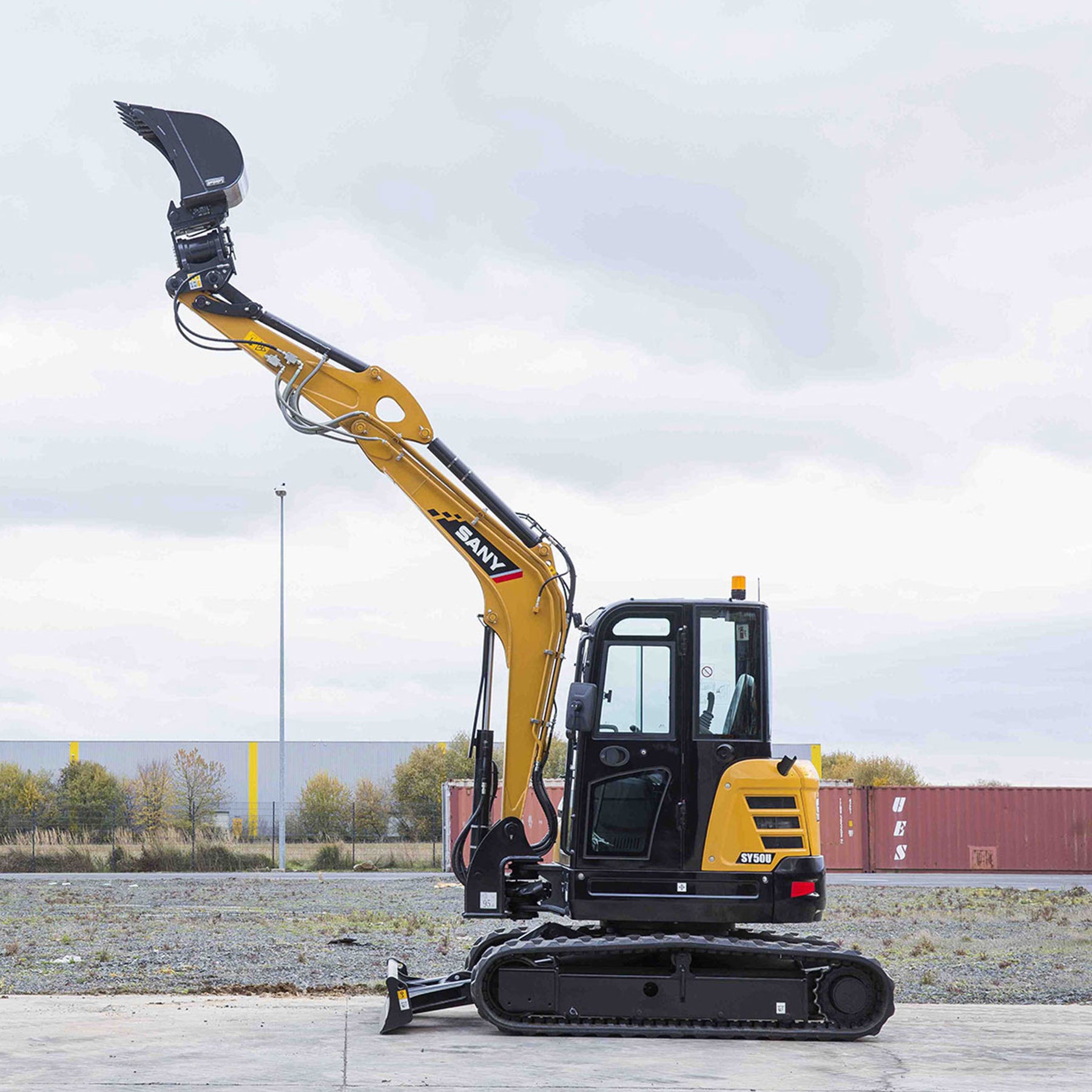 SY50U została wyposażona w szereg elementów zwiększających bezpieczeństwo operatora, takich jak osłony siłowników, wyłącznik akumulatora, a także kabina zapewniająca doskonałą widoczność.