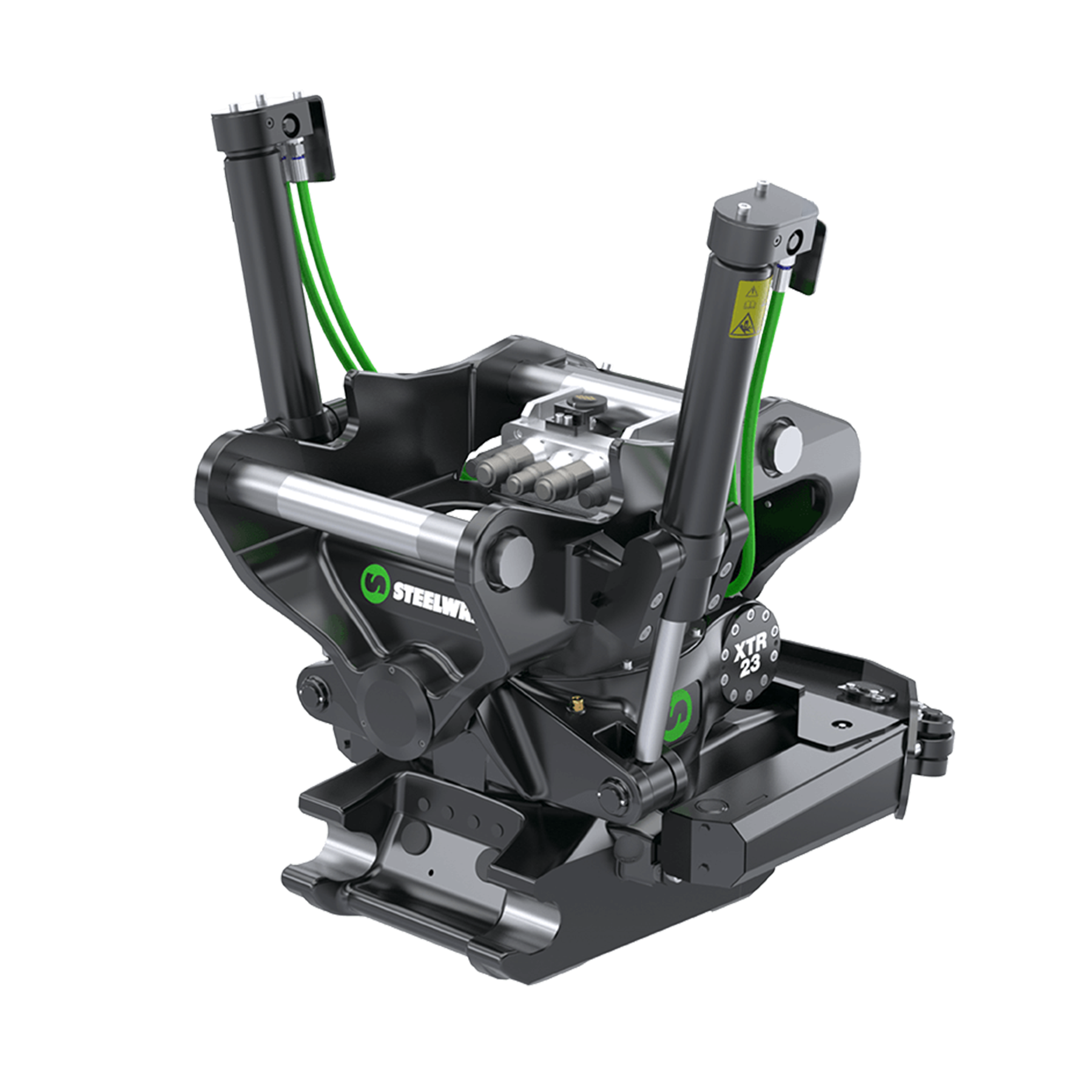 XTR23 pozwala prowadzić łyżkę i osprzęt pod właściwym kątem dzięki przechyłowi ±45° i obrotowi 360°. To ułatwia pracę przy krawędziach, w wykopach i podczas profilowania – bez ciągłego „dojeżdżania” koparką do pozycji.